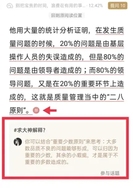 用户可以对书籍里的内容进行提问或者查看其他书友对书籍的提问和相关看法。